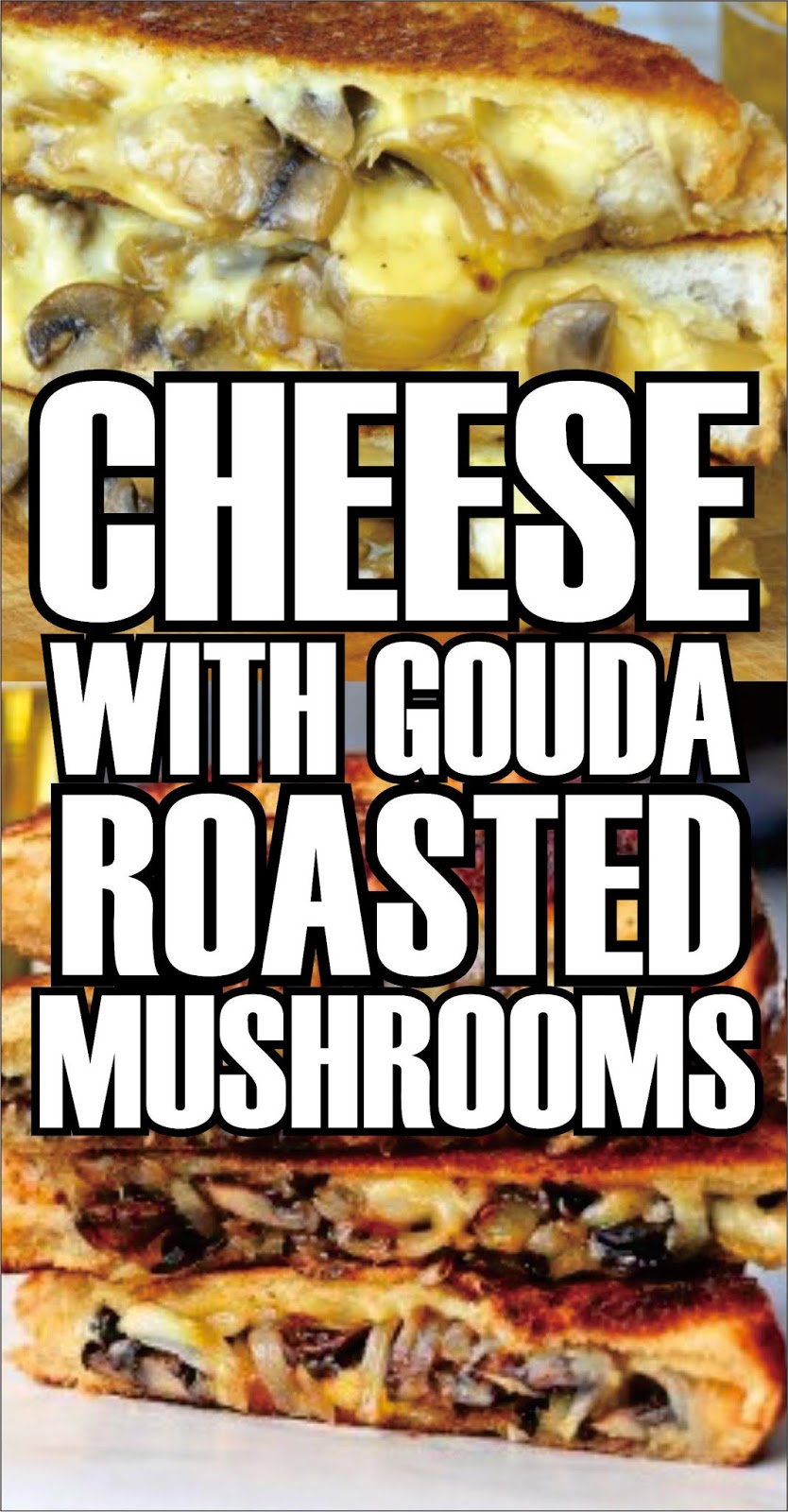 4. While butter is melting, assemble sandwiches. On one slice of bread, layer shredded gouda, the roasted mushrooms and onions, then more gouda. (Layering this way ensures that the melty cheese will hold the sandwich together.) Salt and pepper to taste. Top with the other slice of bread. Lightly press together.